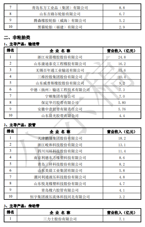 經(jīng)過(guò)各分會(huì)(委員會(huì))的細(xì)致推薦,以及總會(huì)的嚴(yán)格復(fù)審和排序(排序依據(jù)為2022年第4季度與2023年前3季度的營(yíng)業(yè)收入總和),最終有144家企業(yè)成功入圍2024年度中國(guó)橡膠工業(yè)百?gòu)?qiáng)企業(yè)名單。這一舉措不僅彰顯了這些企業(yè)在橡膠工業(yè)領(lǐng)域的卓越地位和成就,也為整個(gè)行業(yè)樹(shù)立了標(biāo)桿和榜樣。