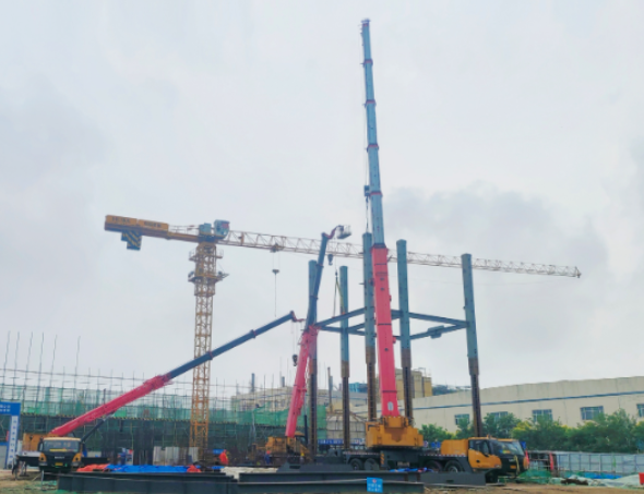 此次安裝的鋼結(jié)構(gòu)一層框架具有相當(dāng)高的技術(shù)要求。整個(gè)安裝過程涉及到25米的安裝距離,以及高達(dá)21.6米的高度,單根鋼柱的重量更是超過了10噸。面對這樣的技術(shù)挑戰(zhàn),十三化建的項(xiàng)目部進(jìn)行了深入且細(xì)致的策劃與部署。他們不僅優(yōu)化了施工流程,還加強(qiáng)了現(xiàn)場的組織協(xié)調(diào)工作,成功克服了施工難度大、場地空間有限等諸多難題,確保了安裝任務(wù)的順利完成。