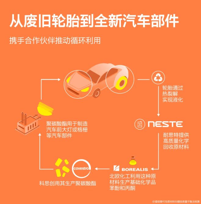 這一合作計劃的核心理念在于實現(xiàn)資源的最大化利用。廢棄輪胎在使用壽命終結(jié)后,不再是垃圾,而是一種可再生資源。通過先進的化學回收工藝,這些輪胎被液化并轉(zhuǎn)化為基礎化學品,進而被制造成高純度的聚碳酸酯。這種材料在汽車大燈部件、格柵等多個方面有著廣泛的應用前景。