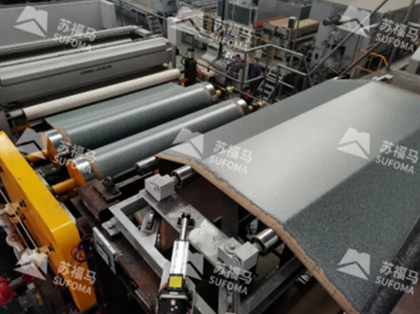 在新產(chǎn)品成功下線并獲得用戶認(rèn)可后,蘇福馬公司的技術(shù)人員并未止步,他們繼續(xù)深入探索特種材料的熱壓工藝,并尋求合適的工藝量產(chǎn)實(shí)現(xiàn)路線。經(jīng)過(guò)一系列精細(xì)的試驗(yàn)和調(diào)整,今年3月,生產(chǎn)線制成品PVC彈性地板的品質(zhì)與產(chǎn)能均達(dá)到了預(yù)期目標(biāo),為用戶順利實(shí)現(xiàn)訂單化生產(chǎn)銷(xiāo)售提供了有力支持。