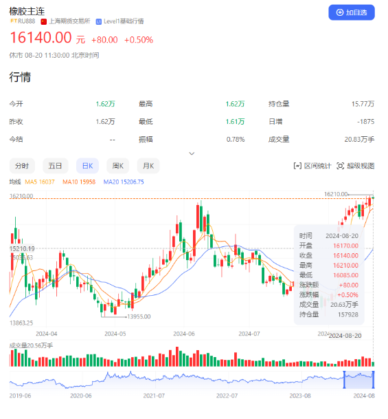 截至8月20日,橡膠今日日盤保持萬(wàn)六開局,窄幅向上震蕩勢(shì)頭未減,創(chuàng)6月份以來(lái)的新高。