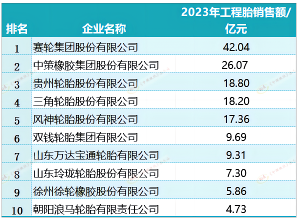 《中國橡膠》雜志社在會上發(fā)布了“2024年度中國工程胎企業(yè)10強”,該榜單以參與中國輪胎排名企業(yè)的2023年工程胎銷售收入為依據(jù)。