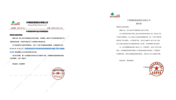 據(jù)炭黑產(chǎn)業(yè)網(wǎng)了解,就在前一天,中策橡膠已連續(xù)發(fā)布了兩份漲價通知。第一份通知指出,自2024年10月25日起,公司將對斜交輪胎及非公路輪胎的價格進行上浮,上調(diào)比例同樣為3%。而第二份通知則表明,公司將對乘用車輪胎的部分產(chǎn)品價格以及各項促銷政策進行相應(yīng)的調(diào)整,預(yù)計上調(diào)的幅度將在2%至3%之間。