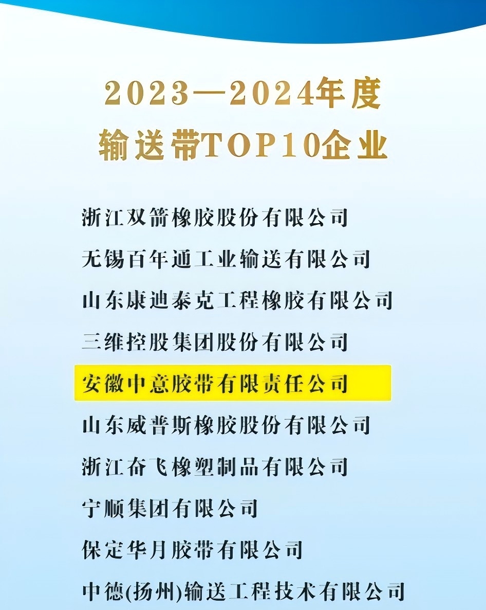 2023-2024年度輸送帶行業(yè)TOP10榜單揭曉