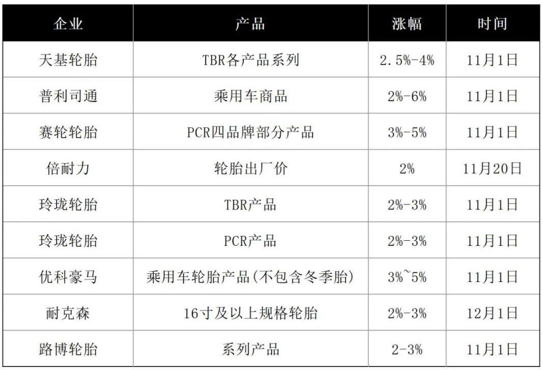 【炭黑產(chǎn)業(yè)網(wǎng)】11月4日消息,輪胎12月的漲價函來了!