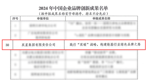 雙星集團品牌創(chuàng)新成果獲殊榮,成輪胎行業(yè)唯一