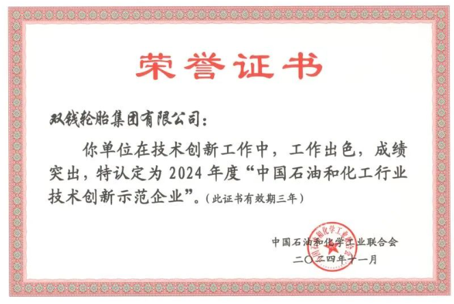 雙錢輪胎榮獲2024技術(shù)創(chuàng)新示范企業(yè)稱號(hào)