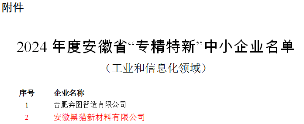 安徽黑貓獲“專精特新”企業(yè)殊榮