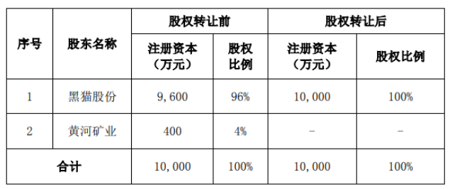 交易前后韓城黑貓的股權(quán)變化: