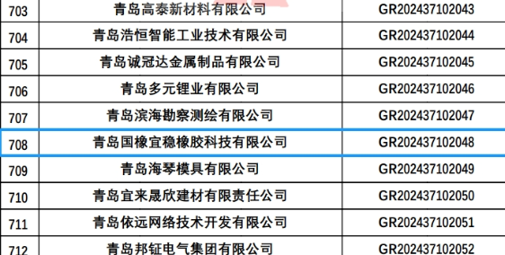 【炭黑產(chǎn)業(yè)網(wǎng)】12月31日消息,青島國橡宜穩(wěn)橡膠科技有限公司成功斬獲高新技術(shù)企業(yè)資質(zhì)!