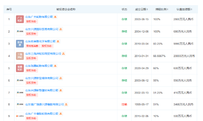 興源輪胎多起股權(quán)凍結(jié)