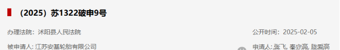 近日,全國企業(yè)破產(chǎn)重整案件信息網(wǎng)公開信息顯示,江蘇安基輪胎有限公司被申請破產(chǎn)。