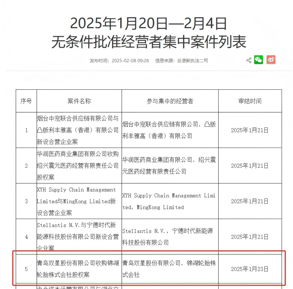 雙星-錦湖輪胎收購(gòu)案,獲無(wú)條件批準(zhǔn)