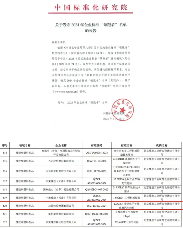 雙錢輪胎榮獲2024年企業(yè)標(biāo)準(zhǔn)“領(lǐng)跑者”稱號