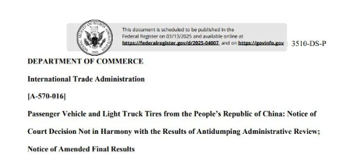 【炭黑產(chǎn)業(yè)網(wǎng)】3月14日消息,近日,美國(guó)商務(wù)部國(guó)際貿(mào)易管理局發(fā)布了一項(xiàng)裁決修正通知,引起了輪胎行業(yè)的廣泛關(guān)注。據(jù)了解,此次裁決修正涉及美國(guó)對(duì)中國(guó)乘用車輪胎的反傾銷案件。早在2019年,美國(guó)商務(wù)部針對(duì)中國(guó)輪胎設(shè)定了“單獨(dú)稅率企業(yè)”的基準(zhǔn)稅率,隨后,眾多中國(guó)輪胎企業(yè)被劃入“中國(guó)實(shí)體”范疇,面臨統(tǒng)一的高稅率。