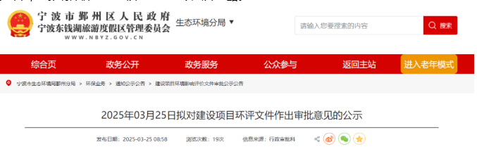 近日,依據(jù)建設(shè)項(xiàng)目環(huán)境影響評(píng)價(jià)審批流程的相關(guān)規(guī)范,寧波市生態(tài)環(huán)境局鄞州分局經(jīng)過審慎審議后,決定就一批建設(shè)項(xiàng)目的環(huán)境影響評(píng)價(jià)文件發(fā)布擬審批意見。為切實(shí)保障審批工作的權(quán)威性與公平性,同時(shí)充分尊重并維護(hù)公眾的知情權(quán)與環(huán)境權(quán)益,該分局特將相關(guān)建設(shè)項(xiàng)目環(huán)境影響評(píng)價(jià)文件的核心信息予以公開披露。