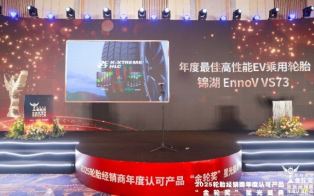 據(jù)炭黑產(chǎn)業(yè)網(wǎng)了解,錦湖輪胎EnnoV VS73自上市以來,便以其卓越的品質(zhì)和創(chuàng)新的技術贏得了市場的廣泛關注。在不到一年的時間里,這款輪胎便成功斬獲了“年度最佳高性能EV乘用輪胎”的榮譽,這不僅是對錦湖輪胎技術實力的肯定,更是其在新能源汽車輪胎領域領先地位的有力證明。