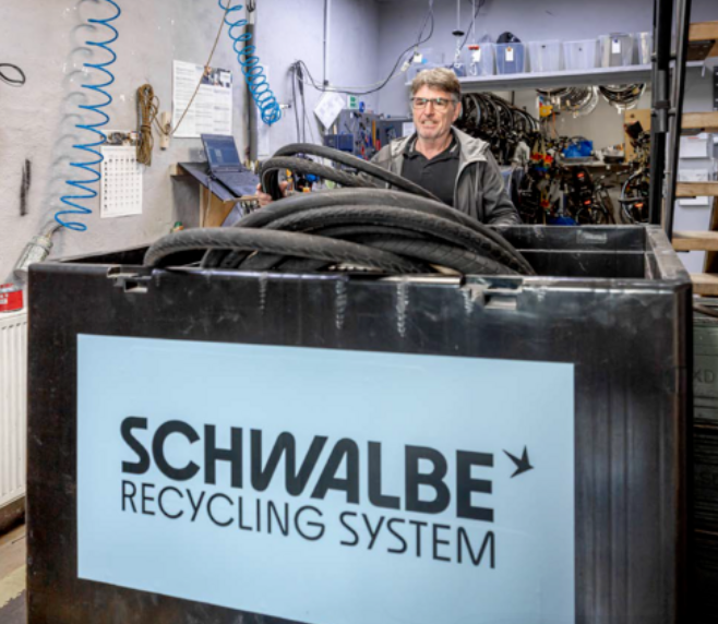 Schwalbe Tires在推動(dòng)輪胎循環(huán)利用方面一直走在行業(yè)前列。自2022年起,該品牌便啟動(dòng)了自行車輪胎回收計(jì)劃,成功回收了數(shù)百萬(wàn)個(gè)自家生產(chǎn)的輪胎。2023年,Schwalbe Tires與Pyrum Innovations AG首次合作,推出了使用回收炭黑的“綠色馬拉松”自行車輪胎。此后,他們不斷嘗試在更多輪胎產(chǎn)品中引入回收炭黑,并逐步擴(kuò)大應(yīng)用范圍。