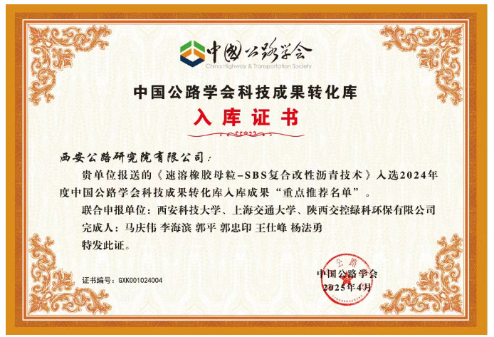 西安公路研究院“速溶橡膠-SBS復合技術”獲行業(yè)重磅推薦