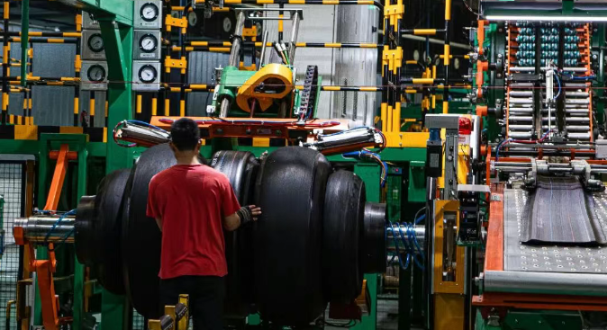 【炭黑產(chǎn)業(yè)網(wǎng)】6月13日消息,四川凱力威科技股份有限公司的生產(chǎn)車間內(nèi)一片繁忙景象,自動化生產(chǎn)線高效運(yùn)轉(zhuǎn),工人們專注地操作著設(shè)備,全力投入到輪胎的生產(chǎn)制造中。從原材料到成品輪胎,每一道工序都嚴(yán)謹(jǐn)有序,經(jīng)過層層加工,一塊塊橡膠原料最終幻化成一條條堅固耐用的全鋼載重子午線輪胎。