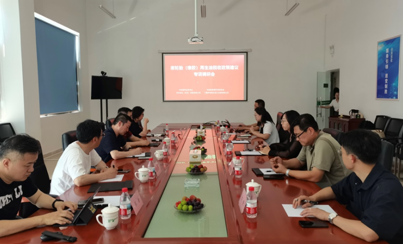 參觀結束后,調研組與伊克斯達舉行了專題座談會。會上,雙方圍繞廢舊輪胎再生油產品在稅收政策執(zhí)行過程中面臨的突出問題展開了深入探討。伊克斯達結合自身實際運營情況,針對再生油在消費稅適用范圍、政策執(zhí)行口徑等方面提出了具體的問題和建議。