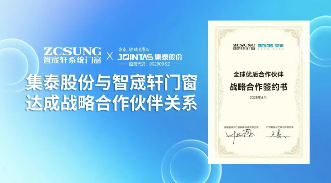 【炭黑產(chǎn)業(yè)網(wǎng)】6月21日消息,近日,廣州集泰化工股份有限公司(股票代碼:002909)與安徽智宬軒門窗系統(tǒng)科技有限公司正式簽訂戰(zhàn)略合作協(xié)議,雙方將整合各自優(yōu)勢資源,共同推動高端門窗領(lǐng)域新一代密封技術(shù)的發(fā)展,探索更多創(chuàng)新應(yīng)用場景。
