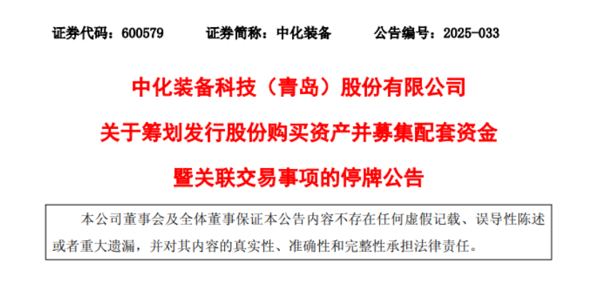 【炭黑產(chǎn)業(yè)網(wǎng)】7 月 15 日消息,中化裝備科技(青島)股份有限公司于 7 月 14 日發(fā)布公告,宣布公司股票自 7 月 15 日起進(jìn)入停牌階段。根據(jù)公告內(nèi)容,此次停牌預(yù)計時長不超過 10 個交易日,主要因公司正推進(jìn)發(fā)行股份收購資產(chǎn)及配套融資等重要事項。