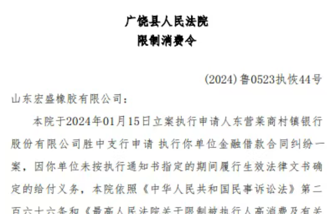 此次法院新下達(dá)的限制消費(fèi)令,明確對宏盛橡膠及張友堯等人的高消費(fèi)及非生活和工作必需消費(fèi)行為進(jìn)行限制,直至其履行完生效法律文書確定的義務(wù)。資料顯示,宏盛橡膠成立于 2003 年,注冊資本 1.08 億元,主要生產(chǎn)全鋼輪胎、半鋼輪胎和工程車輪胎等產(chǎn)品。作為當(dāng)?shù)赜幸欢ㄒ?guī)模的輪胎企業(yè),其經(jīng)營狀況不僅影響自身發(fā)展,也關(guān)系到為其提供金融支持的銀行機(jī)構(gòu)。