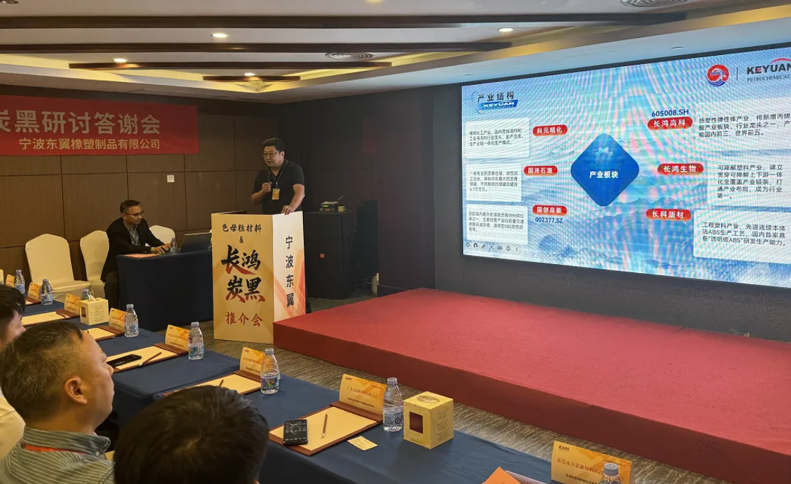 【炭黑產(chǎn)業(yè)網(wǎng)】10月28日消息,10月22日下午,一場(chǎng)主題為色母粒原材料暨長(zhǎng)鴻炭黑的研討答謝會(huì)在廣東東莞順利舉辦,該活動(dòng)由寧波東翼橡塑制品有限公司牽頭主辦。