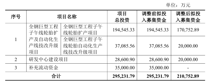 據(jù)公告披露,海安橡膠首次 IPO 實(shí)際募集資金凈額約 21.08 億元,與原計(jì)劃的 29.52 億元存在明顯資金缺口。為最大化發(fā)揮募集資金效益,公司對(duì)原有資金使用方案進(jìn)行優(yōu)化,果斷取消了原計(jì)劃 3.5 億元的補(bǔ)充流動(dòng)資金項(xiàng)目,將這筆資金及其他募集資金優(yōu)先投向核心產(chǎn)能與研發(fā)項(xiàng)目。