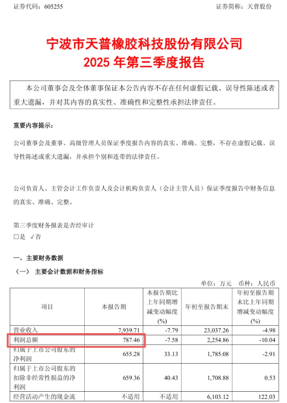 天普股份表示,本次補(bǔ)繳企業(yè)所得稅及滯納金將計(jì)入公司2026年當(dāng)期損益,預(yù)計(jì)將減少公司2026年度凈利潤約581.19萬元,最終以2026年度經(jīng)審計(jì)的財(cái)務(wù)報(bào)表為準(zhǔn)。