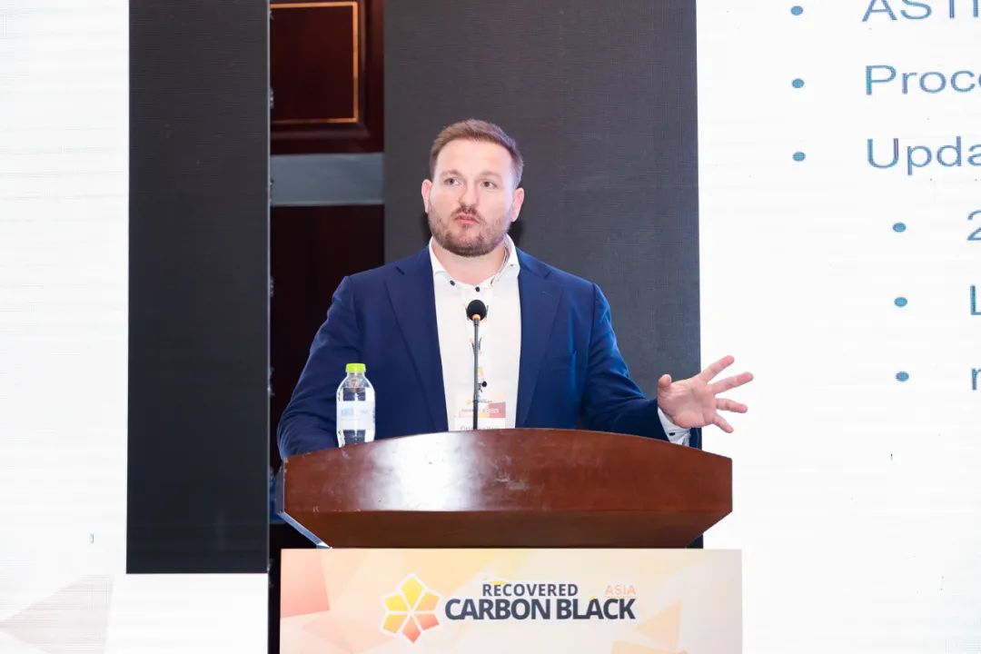 下午的會議主要關注環(huán)保法規(guī)和行業(yè)標準的最新動態(tài)。Circtec可持續(xù)碳質材料總監(jiān)Pieter ter Haar介紹了ASTM D36委員會關于r-CB標準的最新進展,山東合晟環(huán)??萍加邢薰究偨浝碲w曉港則深入探討了“雙碳”理念對中國廢輪胎裂解產業(yè)發(fā)展的指導意義。