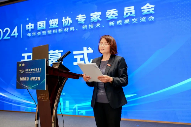 中國塑料加工工業(yè)協(xié)會秘書長兼專家委員會秘書長焦紅文主持年會開幕式