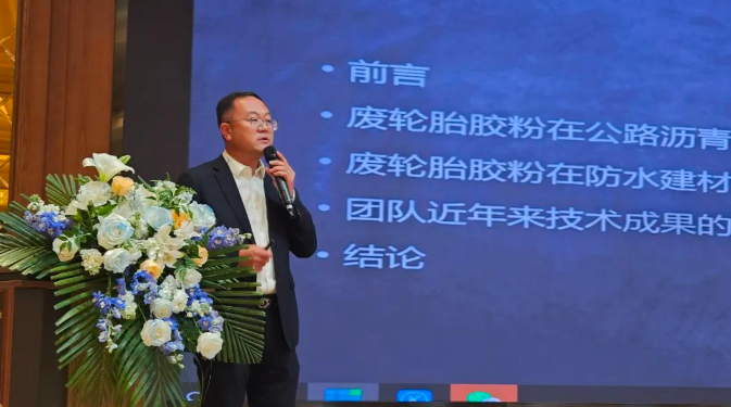北京路德永泰環(huán)保科技有限公司總經(jīng)理董大偉,作“公路及防水建材領(lǐng)域?qū)U橡膠循環(huán)利用技術(shù)的需求分析”的報告。