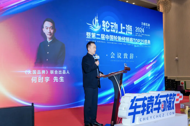 大會伊始,《大國品牌》聯(lián)合出品人何時宇和錦湖輪胎(中國)RE總經(jīng)理沈旭發(fā)表致辭。
