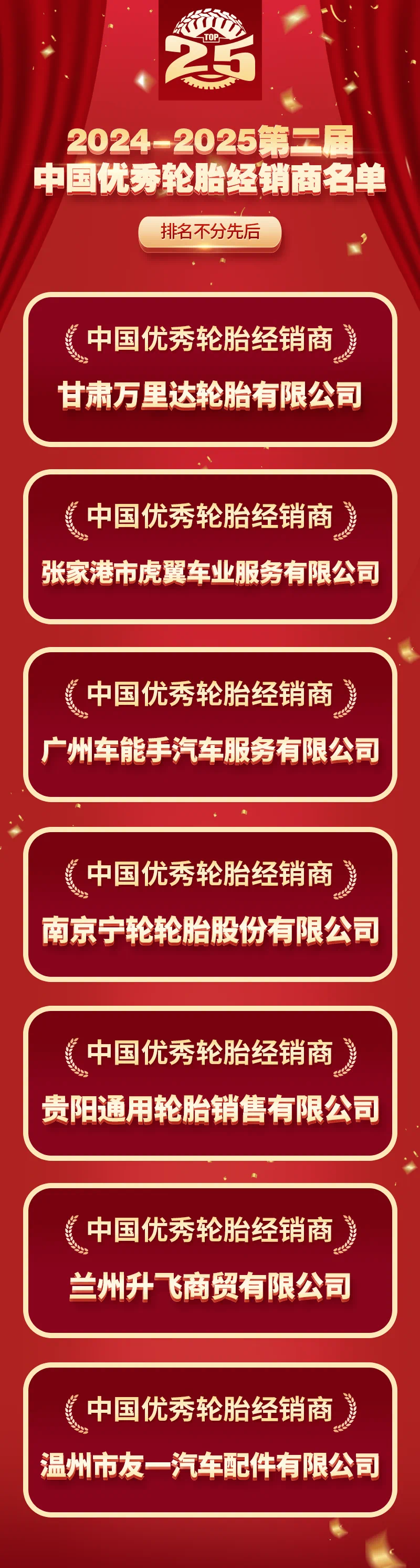 第二屆中國輪胎經(jīng)銷商TOP25頒獎盛典,盛大舉行!