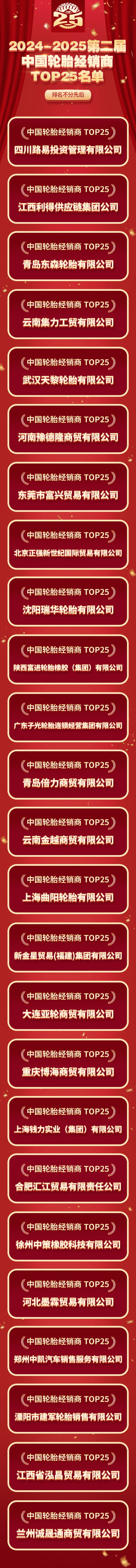 第二屆“中國輪胎經(jīng)銷商TOP25”企業(yè)