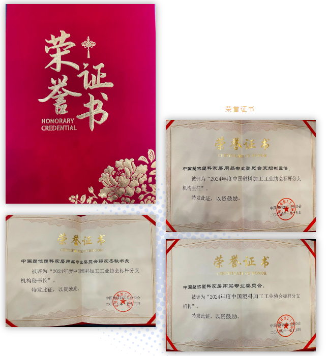 熱烈祝賀中國塑協(xié)塑料家居用品專委會再次獲評為中國塑料加工工業(yè)協(xié)會標(biāo)桿分支機(jī)構(gòu);宋旭彬會長再次獲評為標(biāo)桿分支機(jī)構(gòu)主任;梁家杰常務(wù)副會長兼秘書長再次獲評為標(biāo)桿分支機(jī)構(gòu)秘書長。