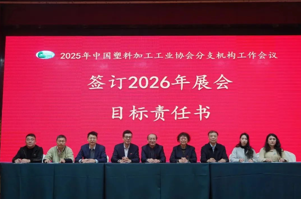 為更好地開展2026中國國際塑料展及系列活動,積極推進(jìn)各項籌備工作順利進(jìn)行,各分支機(jī)構(gòu)負(fù)責(zé)人與協(xié)會督導(dǎo)服務(wù)組負(fù)責(zé)人簽署了《2026中國國際塑料展目標(biāo)責(zé)任書》,各督導(dǎo)服務(wù)組負(fù)責(zé)人與王占杰理事長簽署了六個督導(dǎo)服務(wù)組目標(biāo)責(zé)任書。