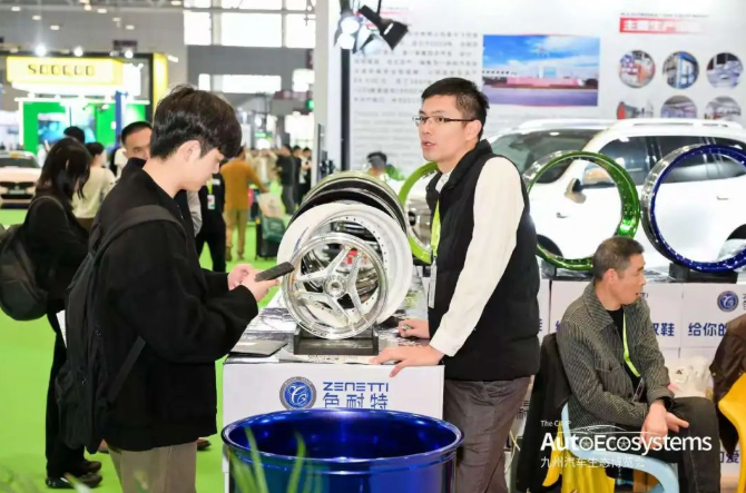 定南色耐特則以“給您的愛車換雙鞋”為主題打造展位,別出心裁地設(shè)置了現(xiàn)場(chǎng)組裝體驗(yàn)區(qū),讓觀眾親自參與輪轂的組裝過程,直觀感受其產(chǎn)品的結(jié)構(gòu)和特點(diǎn)。這一創(chuàng)意主題生動(dòng)形象地傳達(dá)了為車輛更換高品質(zhì)輪轂如同為愛車換上時(shí)尚且高性能鞋子的理念,極具吸引力。