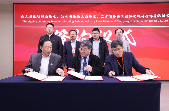 技術(shù)交流會(huì)是以橡膠產(chǎn)業(yè)之名,鏈接遼寧、鏈接全行業(yè)的盛會(huì)。山東省橡膠行業(yè)協(xié)會(huì)會(huì)長張洪民、江蘇省橡膠工業(yè)協(xié)會(huì)會(huì)長周連祥、遼寧省橡膠工業(yè)協(xié)會(huì)會(huì)長陳國瑞簽訂了“三省協(xié)會(huì)戰(zhàn)略合作協(xié)議”。
