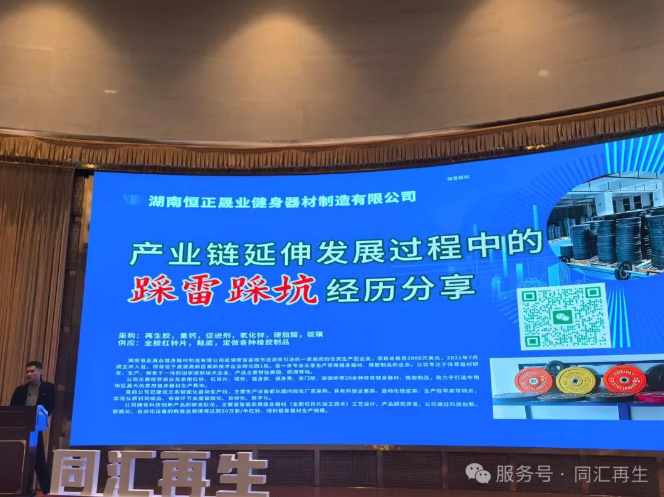 湖南恒正晟業(yè)健身器材有限公司總經(jīng)理申帥作《產(chǎn)業(yè)鏈延伸發(fā)展過(guò)程中的踩雷踩坑經(jīng)驗(yàn)分享》的主題報(bào)告。從最初的簡(jiǎn)單分解到膠粉、再生膠,再到熱裂解,以及后期制品產(chǎn)業(yè)的發(fā)展經(jīng)歷中,詳細(xì)分享了自己在產(chǎn)業(yè)鏈內(nèi)的踩坑經(jīng)歷,對(duì)行業(yè)內(nèi)的廠家有很強(qiáng)的借鑒意義。