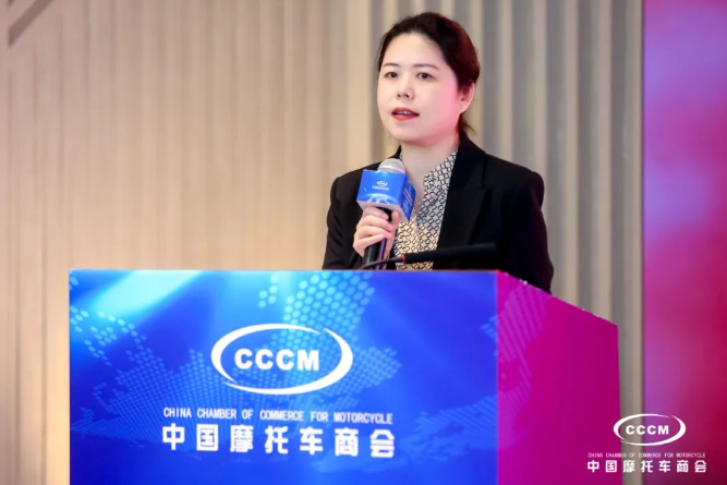 中國摩托車商會副秘書長張婭娣宣讀了《關(guān)于表揚(yáng)2024 年度中國摩托車產(chǎn)業(yè)優(yōu)秀出口企業(yè)的決定》。