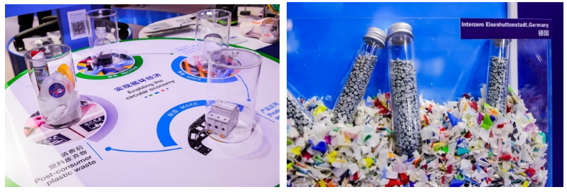 綠色發(fā)展是高質(zhì)量發(fā)展的底色。在展館的每個角落,“可持續(xù)發(fā)展”的主旋律悠然回響。無論是展會的各個主題專區(qū),還是各個同期活動,都可以看到可持續(xù)發(fā)展的元素。在回收再生科技專區(qū)、再生塑料專區(qū)及生物塑料專區(qū),展商們“鑼鼓喧天”紛紛搬出看家寶貝。來自艾斯瑞特的rPET固相增粘設(shè)備,解決了物理回收行業(yè)rPET粒子粘度下降、性能降低的問題,從而實現(xiàn)了rPET的高價值應(yīng)用場景。來自德國歐綠保集團Alba的綠色燃氣技術(shù),解決了回收行業(yè)的生活垃圾處理難度高、效率低等問題,將生活垃圾的綜合回收率提高到98%以上。