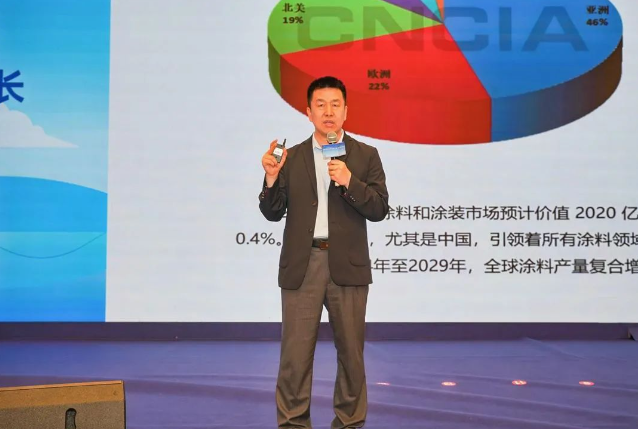 中國涂料工業(yè)協(xié)會秘書長劉杰所作的《中國涂料行業(yè)2024年經(jīng)濟運行情況及2025年發(fā)展趨勢分析》成為全場關(guān)注的焦點。劉杰在報告中介紹了2024年中國宏觀經(jīng)濟發(fā)展形勢和中央先后出臺的逆周期刺激政策,指出,尤其在設備領域、基建領域,宏觀經(jīng)濟政策影響重大,增速提升,將對涂料行業(yè)產(chǎn)生深遠影響。2024年全球涂料和涂裝市場預計價值2020億美元,產(chǎn)量達489億升,較2023年同期價值增長2.5%,產(chǎn)量增長0.4%。預計,2024年至2029年,全球涂料產(chǎn)量復合增長率3%,價值復合增長率5.8%。亞太地區(qū),尤其是中國,引領著所有涂料領域以及幾乎所有細分領域,在價值和總量方面均處于領先地位。2024年,中國涂料總產(chǎn)量3534.1萬噸,同比降低1.60%;主營業(yè)務收入4089.03億元,同比增長1.56%;利潤總額增長262.9億元,同比增長9.34%。展望2025年,涂料成品價格將保持穩(wěn)定小幅增長趨勢,更貼合市場需求的功能性產(chǎn)品增速加快,成品價格增長將延續(xù);建涂、工業(yè)防護等領域中低端供應內(nèi)卷將繼續(xù)加劇,成品價格將繼續(xù)走低。增長重點仍在工業(yè)領域,預計行業(yè)總體產(chǎn)量增速約1%~3%,主營業(yè)務收入增速約3%~5%利潤總額預計增速約6%。