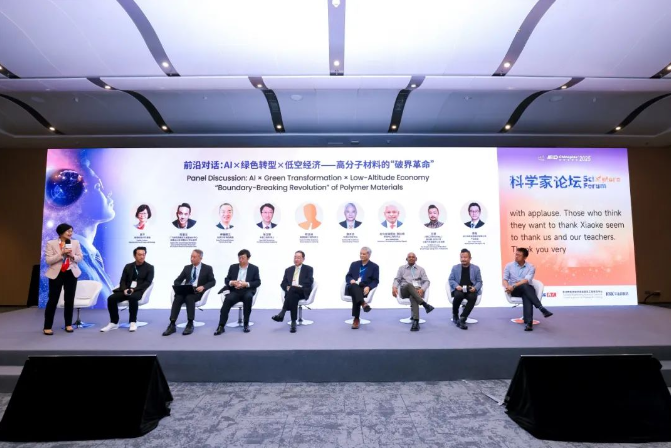 論壇特設(shè)的前沿對(duì)話環(huán)節(jié)由高平教授主持,企業(yè)高管與科學(xué)家圍繞“AI × 綠色轉(zhuǎn)型 × 低空經(jīng)濟(jì)”主題展開(kāi)深入探討,碰撞出創(chuàng)新的火花。隨著人工智能技術(shù)在各行業(yè)的廣泛滲透,橡塑行業(yè)也面臨著與新興技術(shù)融合的機(jī)遇與挑戰(zhàn)。專(zhuān)家與企業(yè)高管們從不同角度分享了對(duì)這一新興交叉領(lǐng)域的見(jiàn)解,為企業(yè)如何在數(shù)字化浪潮中借助人工智能推動(dòng)高分子材料研發(fā)、生產(chǎn)及應(yīng)用創(chuàng)新提供了寶貴建議,探索了高分子科學(xué)與人工智能協(xié)同發(fā)展的無(wú)限可能。