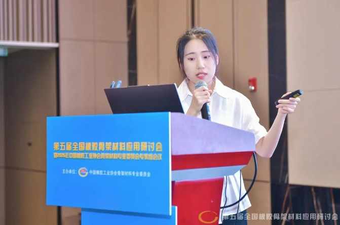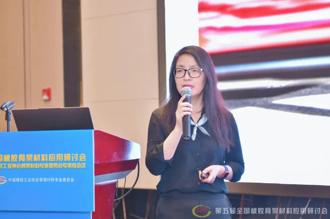 三角輪胎股份有限公司材料研發(fā)主任劉恩冉,分析了可持續(xù)骨架材料在輪胎中的應(yīng)用情況,強(qiáng)調(diào)其對(duì)推動(dòng)輪胎行業(yè)綠色發(fā)展、降低環(huán)境影響的重要作用。