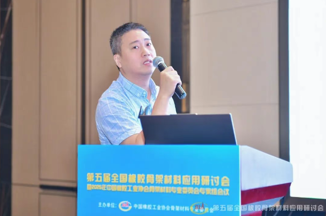 大會(huì)報(bào)告環(huán)節(jié),16 位行業(yè)專(zhuān)家圍繞橡膠骨架材料開(kāi)發(fā)、標(biāo)準(zhǔn)建設(shè)、綠色制造、智能化應(yīng)用等議題發(fā)表演講。