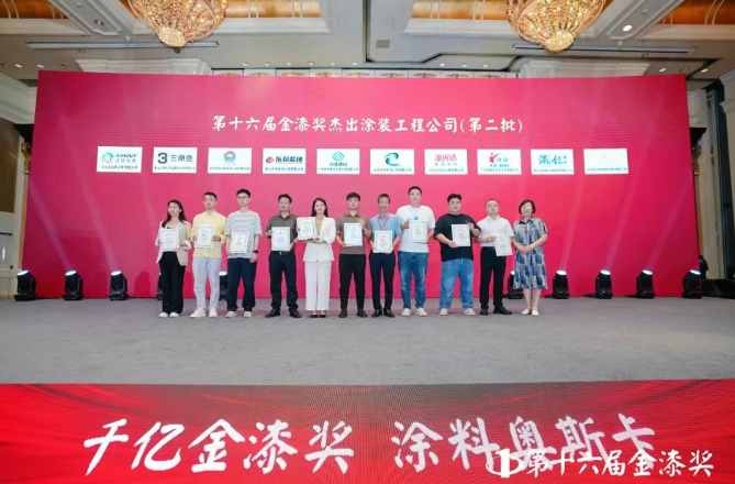 “紫荊花”榮獲第十六屆金漆獎(jiǎng)藝術(shù)涂料臻選品牌;富思特新材料科技發(fā)展股份有限公司榮獲第十六屆金漆獎(jiǎng)?wù)檫x創(chuàng)新解決方案供應(yīng)商;江門市制漆廠有限公司榮獲第十六屆金漆獎(jiǎng)?wù)檫x創(chuàng)新解決方案供應(yīng)商;“固克綠色修繕”榮獲第十六屆金漆獎(jiǎng)修繕?lè)?wù)杰出品牌;“寶塔山”榮獲第十六屆金漆獎(jiǎng)仿石涂料臻選品牌;“君子蘭”榮獲第十六屆金漆獎(jiǎng)木門涂料臻選品牌;“Novacolor”榮獲第十六屆金漆獎(jiǎng)進(jìn)口藝術(shù)涂料臻選品牌;“金陵涂料”榮獲第十六屆金漆獎(jiǎng)水性涂料臻選品牌;廣東中涂聯(lián)涂料科技有限公司榮獲第十六屆金漆獎(jiǎng)?wù)檫x創(chuàng)新解決方案供應(yīng)商;“光明”榮獲第十六屆金漆獎(jiǎng)防腐涂料臻選品牌;“卓瑪”榮獲第十六屆金漆獎(jiǎng)兒童級(jí)健康膩?zhàn)宇I(lǐng)創(chuàng)品牌;“亞士”榮獲第十六屆金漆獎(jiǎng)涂料膩?zhàn)诱檫x品牌;“君子蘭”榮獲第十六屆金漆獎(jiǎng)UV涂料臻選品牌;“展辰”榮獲第十六屆金漆獎(jiǎng)工業(yè)涂料臻選品牌;“渝輝”榮獲第十六屆金漆獎(jiǎng)涂料智能裝備臻選品牌;“優(yōu)培”榮獲第十六屆金漆獎(jiǎng)?wù)槊老蠕h涂料品牌;“VillaePaint 甄圖藝墅家”榮獲第十六屆金漆獎(jiǎng)設(shè)計(jì)師信賴之藝術(shù)涂料新銳品牌;“剛玉”榮獲第十六屆金漆獎(jiǎng)仿石涂料臻選品牌。