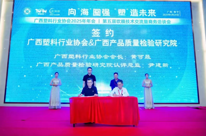 在專題演講環(huán)節(jié)結(jié)束后,廣西塑料行業(yè)協(xié)會與廣西產(chǎn)品質(zhì)量檢驗研究院舉行了戰(zhàn)略合作簽約儀式,雙方將共同推進塑料行業(yè)質(zhì)量提升與技術(shù)創(chuàng)新。